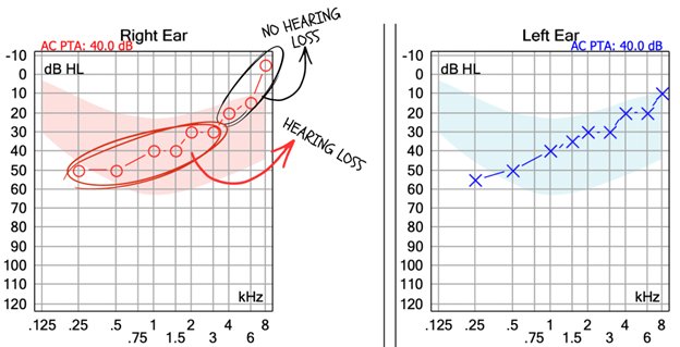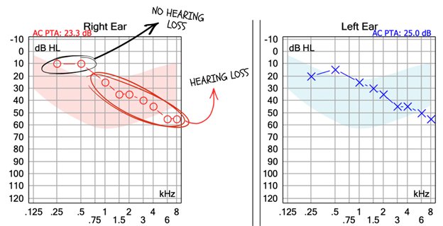 For someone with high-frequency hearing loss, for example, certain higher-pitched sounds (like speech consonants or birds chirping) are harder to hear, but the lower frequencies (like bass sounds) are usually preserved.